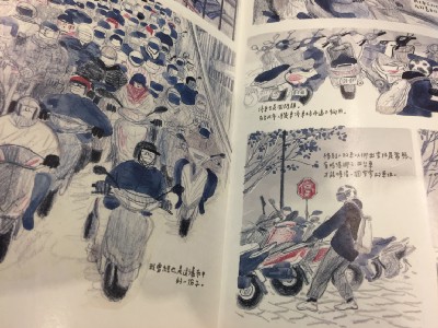 像是去年在法國安古蘭駐村的漫畫家陳沛珛,就畫出上下班時間路上塞滿機車的獨特台味,漫畫家歐冷則熱中記錄傳統民俗,畫下澎湖傳統喜慶的「擲炸棗」古早味。